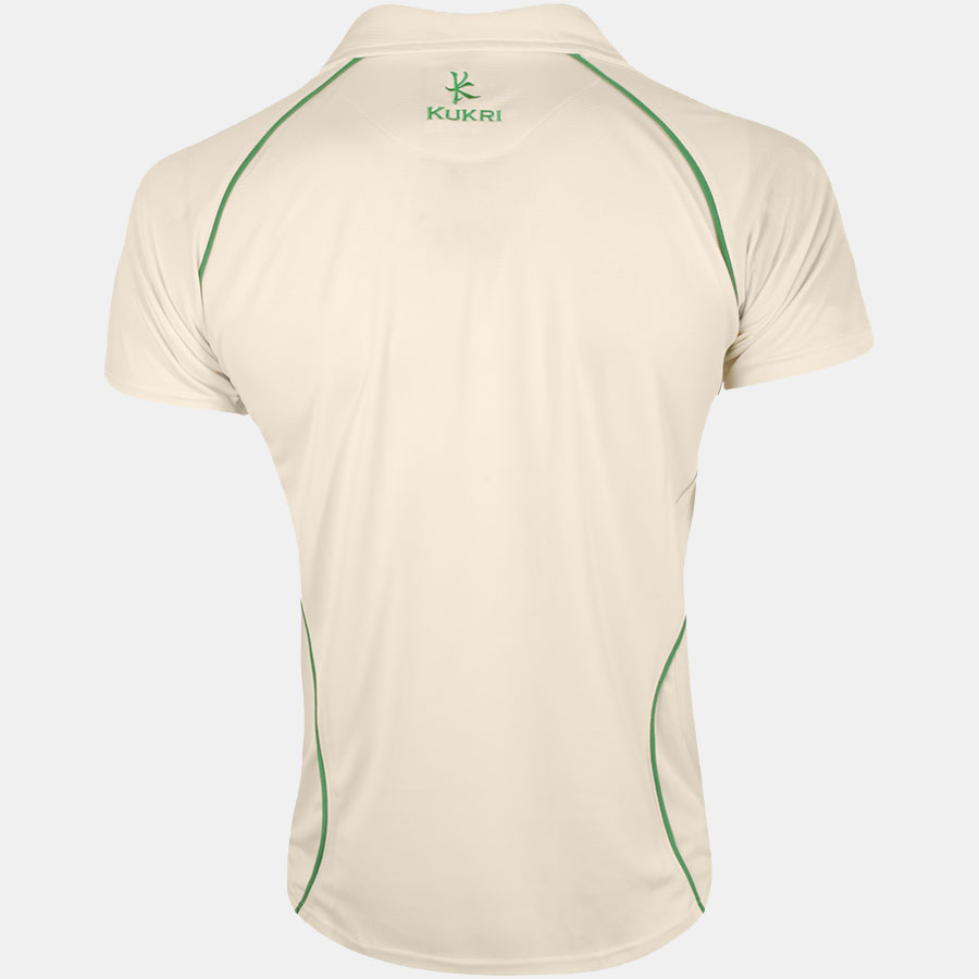 This off white and emerald green Cricket Jersey is made from our lightweight and breathable S-Spire fabric, which has excellent moisture management properties to keep you cool and dry. Perfect for playing at club or School level. You can add your club logo, sponsors, names and numbers to our Cricket Kit. To get started, email your logo and order to uksales@kukrisports.com, or call 01772 338899 (option 1).